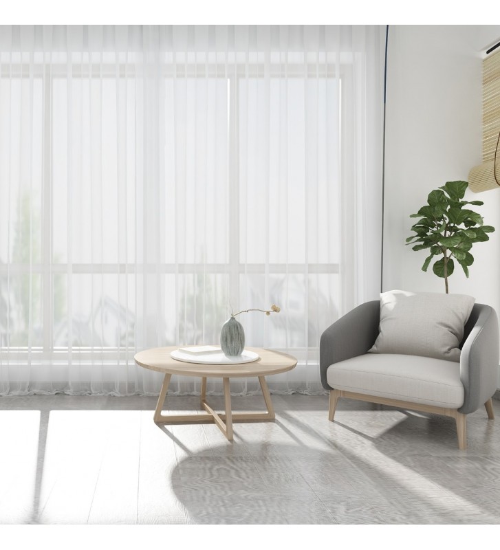 Egyszínű fehér,szablé alapú,fényáteresztő függöny.A fényt jól átereszti,szolid anyaga minden stílushoz jól illeszkedik.Alján gyárilag ólomzsinórral szegve.