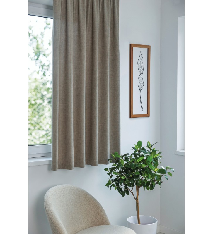 Barna színű minta nélküli dekor sötétítő függöny.Közepesen vastag,de jól sötétít,mert sűrű szövésű.Többféle színben rendelhető,puha szövet,lágy esésü.