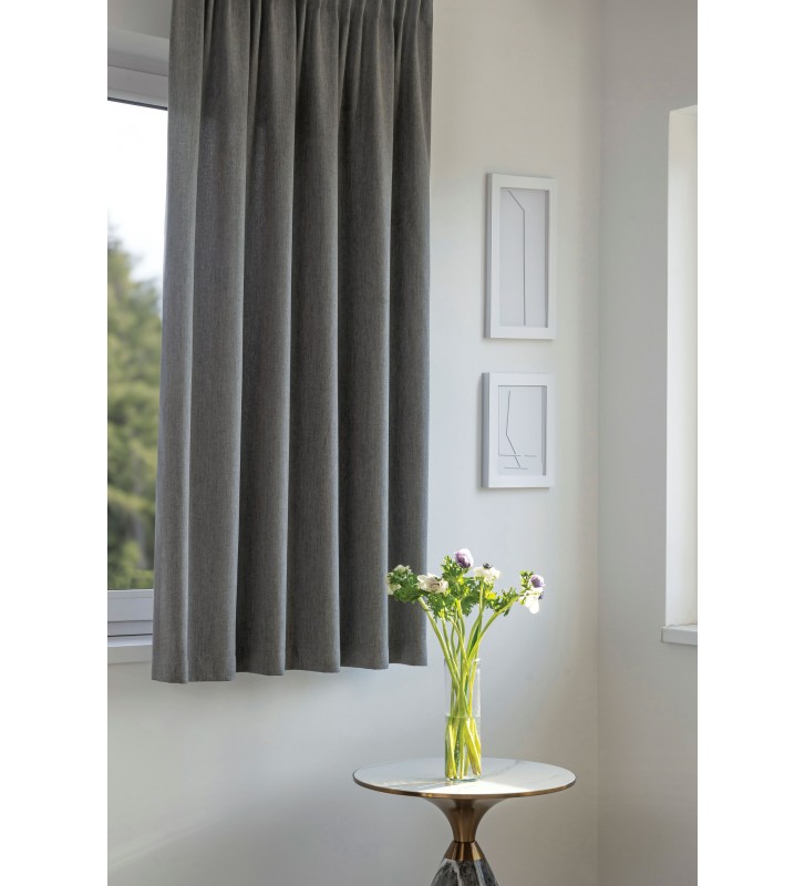 Szürke színű minta nélküli dekor sötétítő függöny.Közepesen vastag,de jól sötétít,mert sűrű szövésű.Többféle színben rendelhető,puha szövet,lágy esésü.