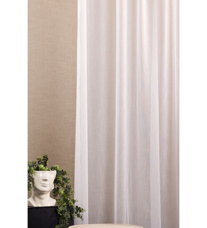 Egyszínű fehér, szablé alapú,minta nélküli fényáteresztő függöny.A fényt közepesen átereszti,lágy esésű,könnyed függöny,amely minden stílushoz jól illeszkedik.Kevésbé gyűrődik.Alján gyárilag ólomzsinórral szegve.