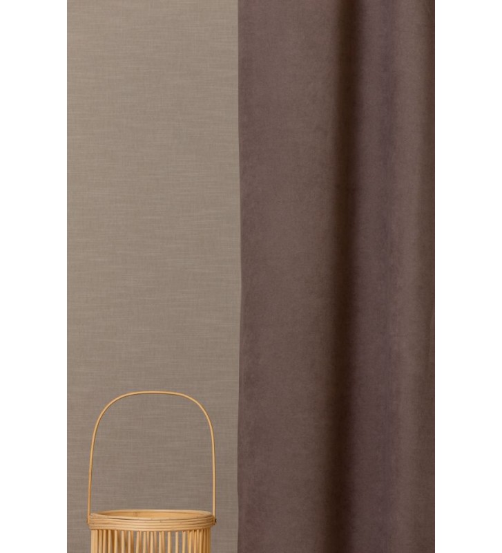 Szürkésbarna mintanélküli dekor függöny.Közepesen sötétítő,lágy esésű anyag.Nappaliba vagy hálóba egyaránt elegáns dekor sötétítő függöny.Könnyen kezelhető,mosása és vasalása közepes fokon javasolt.