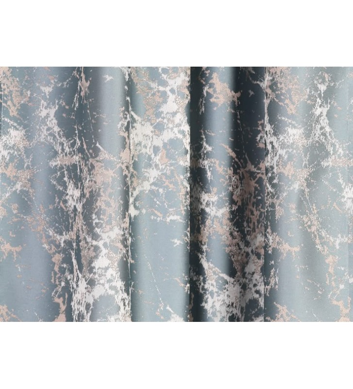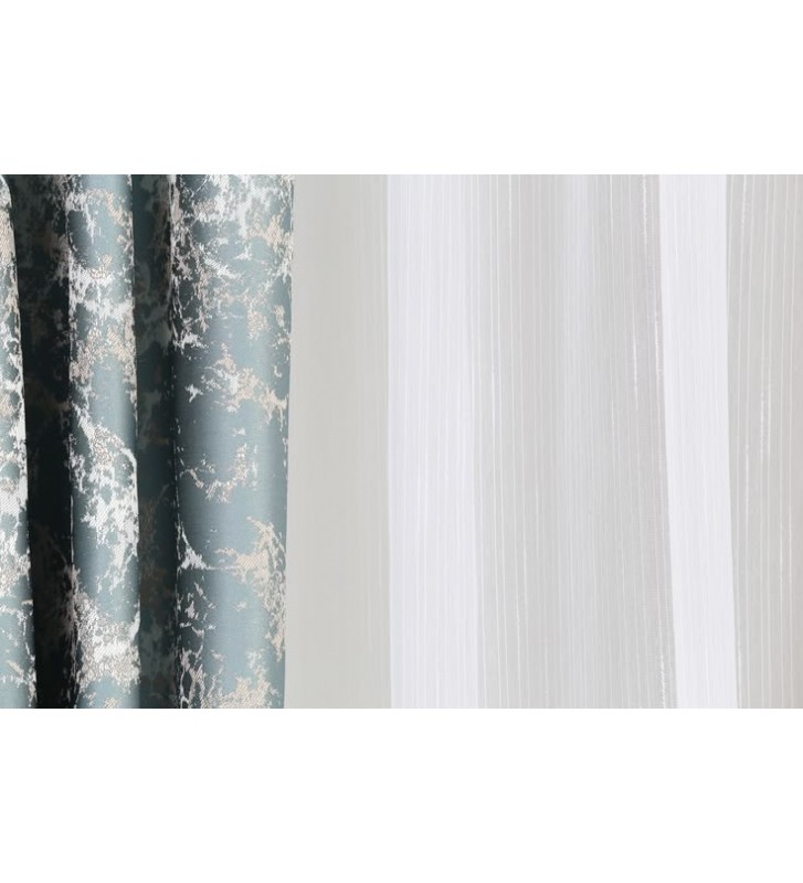 Anyagában fényes,márványmintás,divatos modern függöny.Türkiz és szürke színárnyalatok teszik különlegessé a mintáját.Több színben rendelhető.Közepesen vastag,lágy esésü sötétítö függöny.Egyszínű minta nélküli fényáteresztő függönyt javaslunk hozzá.