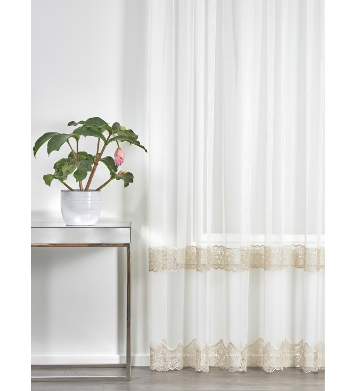 Linka bordűrös fényáteresztő függöny 290 cm vajszín