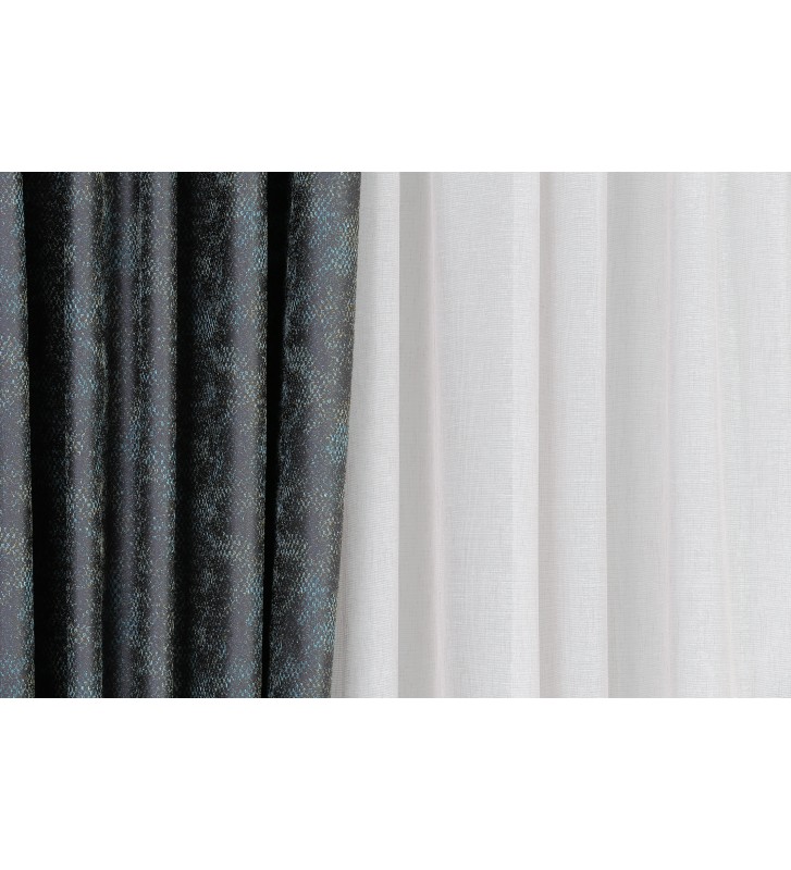 Anyagában fényes,márvány mintás,divatos modern függöny.Türkiz és barna színek dominálnak benne.Több színben rendelhető.Közepesen vastag,lágy esésü sötétítö függöny.Egyszínű minta nélküli fényáteresztő függönyt javaslunk hozzá.Mosása és vasalása kímélő 30 fokon javasolt.Nem gyűrődős.