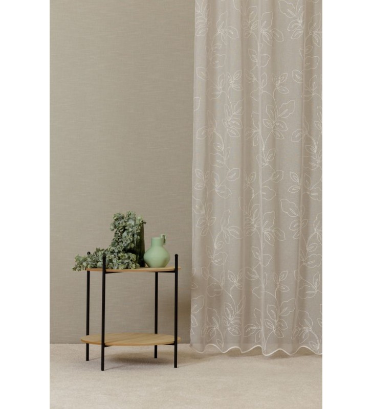 A zsinórhímzés varázsa - A zsinórhímzés egy rendkívül elegáns és kifinomult módja a lakberendezésben használt textíliák díszítésének, amely nem csupán vizuálisan emeli ki a tér hangulatát, hanem különleges textúrával és mélységgel is gazdagítja azt. A Zelia zsinórhímzett fényáteresztő sablé tökéletes példája ennek a páratlan technikának. Finom részletei, mint a természetes hatású alap, a lágy, naturális színek és az organikus leveles mintázat harmonikus egyensúlyt sugároznak, miközben diszkrét, mégis karakteres megjelenést biztosítanak. A mintázat a fény hatására életre kelve emelkedik ki az alapból, létrehozva egy dinamikus, háromdimenziós hatást, amely a folyamatosan változó fényviszonyokkal izgalmas és játékos atmoszférát teremt. Bátran ajánljuk olyanok számára, akik egyedi, mégis időtlen eleganciával szeretnék gazdagítani otthonuk báját, miközben praktikus megoldásokat keresnek a fényviszonyok és a tér esztétikai hatásának optimalizálására.